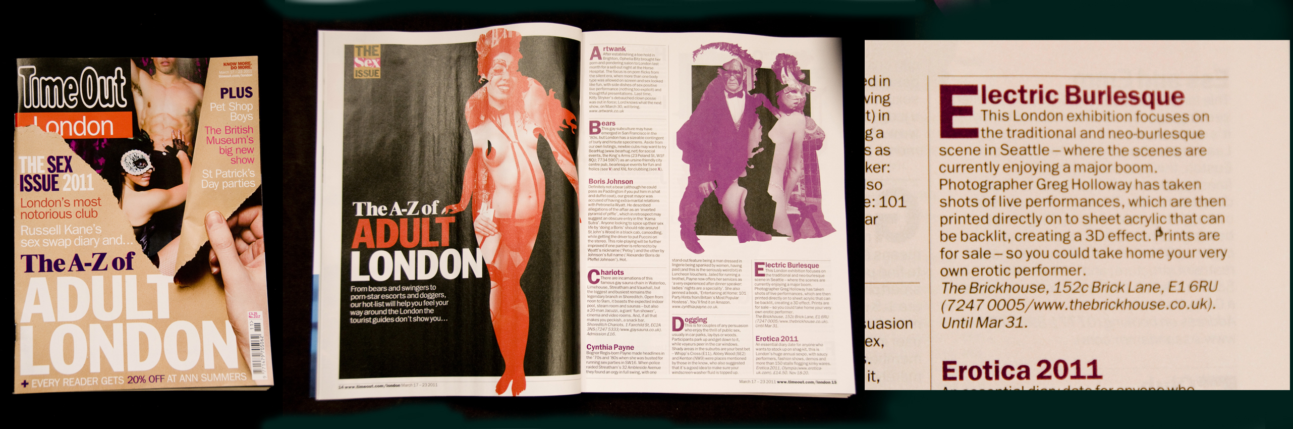 Meanwhile, Sinner Saint and their photographic paramour Greg Holloway have been cavorting in London, absolutely rocking a residency at The Brickhouse from March 8-19. When I spoke with burlesque star Miss Astrid a few months ago, she told me that neo-burlesque’s rise is remarkably heated in the UK and Europe these days- and that it reminded her of the subversive early days of neo-burlesque circa the legendary Velvet Hammer shows. Sinner Saint, by all accounts, is doing Seattle burlesque proud in London.