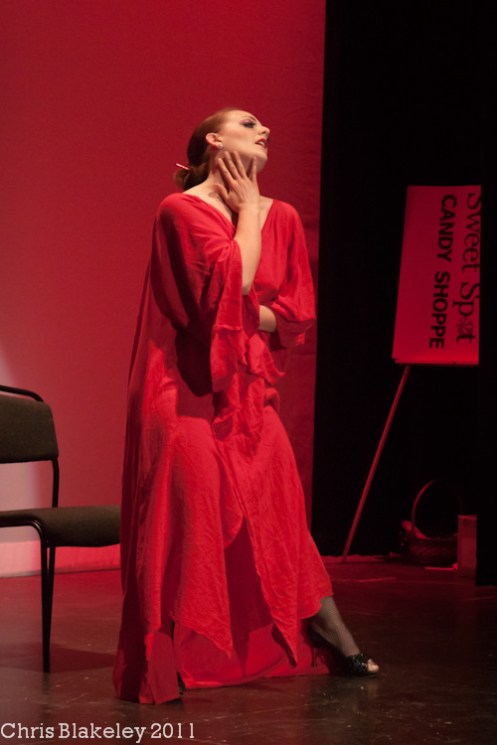 No sooner has the audience caught its collective breath when GiGi La Femme appears, exuding (and that is the only word for it) a sassy sex kittenish attitude, demonstrating exactly why she’s winner of “Best Booty Shaker” at the New York Burlesque Festival two times running. I damn near forget to breathe and that’s before she comes back with a spanking number in the second act. And if that wasn’t enough for you, Darlinda Just Darlinda and Minnie Tonka come out as the Schlep Sisters, filling the room with a fire routine, heating up Seattle before heading to compete in this year’s Burlesque Hall of Fame in the “Best Group” category.