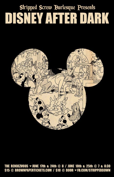 Disney is about to get a dirty, dirty makeover- Stripped Screw style. Seattle’s post-modern burlesque troupe presents two weekends of back to back bedtime stories from the Magic Kingdom and beyond. No fairy princess is sacred. (Thank god).