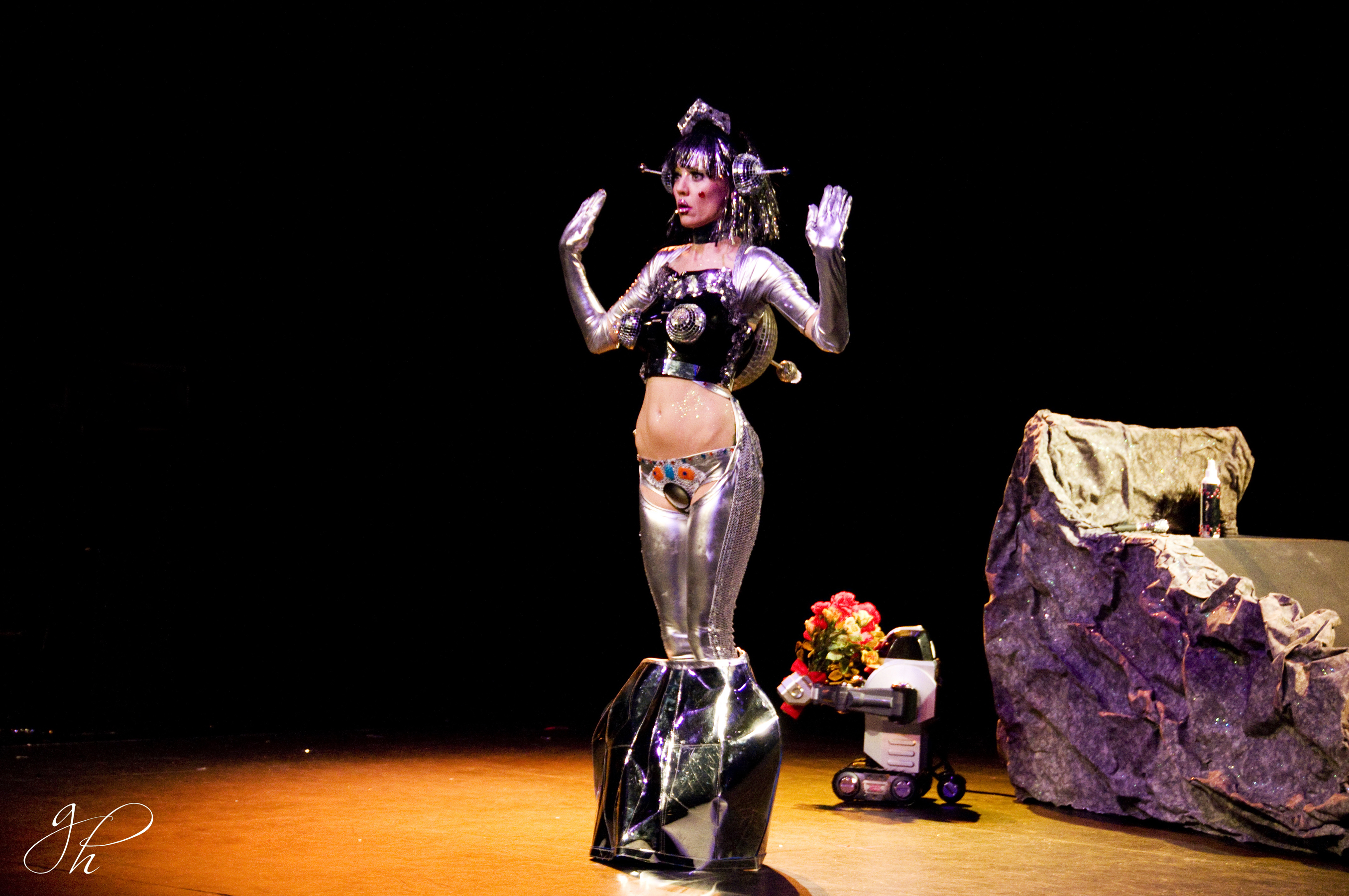 Last year The Atomic Bombshells presented an ambitious all new production, Lost In Space– definitely the most over the top show up to that point in Bombshell history in terms of scope, cast size, fantastical costumes, and sets. Never ones to sit back and rest on their adorable laurels, the Bombshells have dreamed even bigger for the upcoming three night encore run of Lost In Space (October 6-8 at The Triple Door). There will be just a few little additions and surprises, says performer and Artistic Director Kitten LaRue: