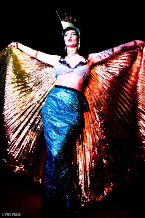 Burlesque Seattle Press: A question for Hai: I remember those amazing Isis wings from when I came for the Stolen Sweets Secret Society show- they’re amazing. Did you make the wings and your beautiful ship headpiece? Your champagne bottle was also hilarious.