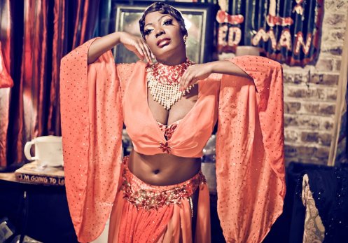 Perle Noire: I met Charlotte in New Orleans. She was performing with The Travel Channel’s Top Burlesque show pick Bustout Burlesque. We had an instant connection. I invited her to my home for a party. My good friend and famous photographer Kaylin Idora told me that Charlotte was an amazing costume designer. And the rest is herstory. My costume is so pretty. My act is inspired by the African Goddess, Oshun. Charlotte made a beautiful flame cape and classic panel skirt inspired costume. Everyone should hire her!