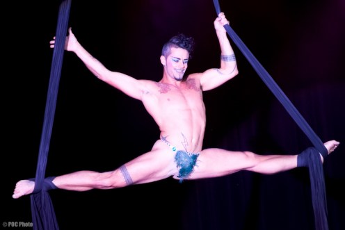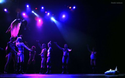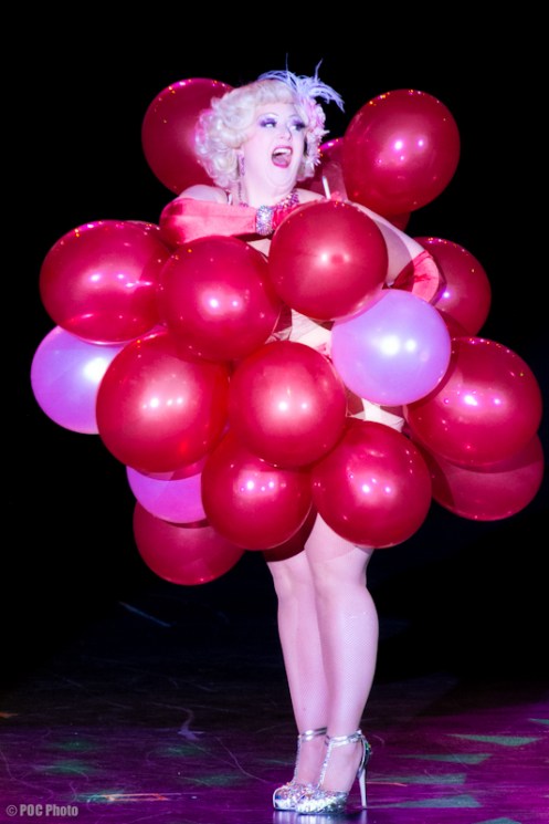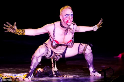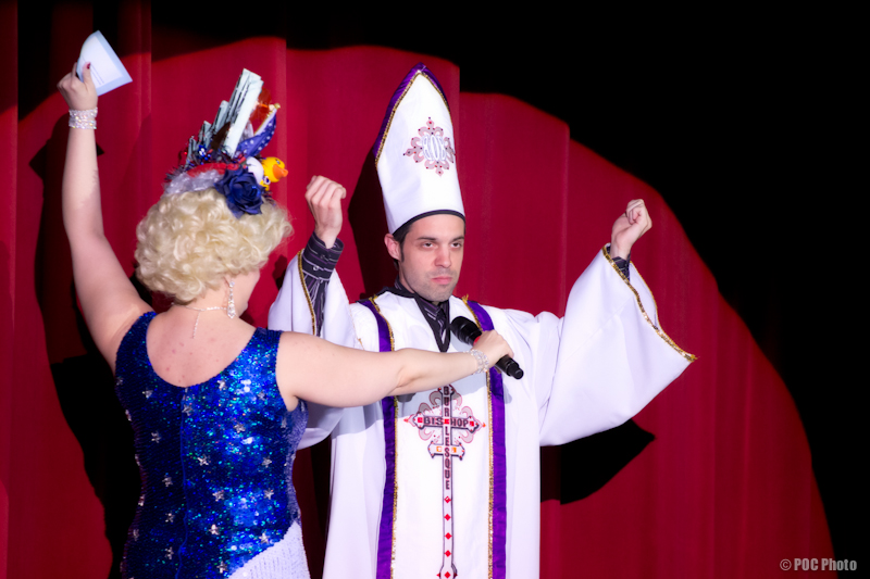 Each year at BHoF, the previous Reigning Queen does a step-down number right before the announcement of the new queen. This year Indigo Blue mesmerized the crowd with her wonderful farewell routine. In the interest of full disclosure, I was lucky and honored to be part of her act (as prancer and Indigo Blue lifter, Man Johnson). The stage was so huge you could set up several slip n’ slides on it (maybe that’s an act for next year?) and Indigo’s supporting cast broke out their best moves to try and fill it. Featuring Seattleites Ernie Von Schmaltz, Sir Eddie Van Glam, and Mickey Doe Eyes, the rest of the ensemble included performers from across the country: Bazuka Joe, Switch, Bronwen, Joseph St. Altered, Alotta Boutté and former Kings of Burlesque Captain Kidd, The Evil Hate Monkey, and Tigger. Coordinating the entire three-part affair was Inga Ingénue. Part one featured Indigo rising from beneath the stage as four loyal subjects genuflect to Her Royal Highness. Next was a down-and-dirty striptease with Indigo alone on stage. The final act, which involved the whole company, ended with Indigo’s “Crown on the Ground” for the next queen and Indigo’s ascension into the air.