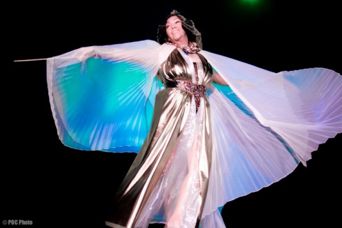 During BHoF weekend at The Orleans Hotel and Casino, the surreal moments just after one of the burlesque shows lets out or during an intermission are some of the more memorable. It’s the mix of two worlds: the glittery crowd of performers, producers, fans & photographers, and the slot machine junkies pulling the levers (or in this modern age of technology, pressing buttons) for a hopeful cash payout. As one world spills out of the theater, it’s always fun to watch the other world look on in amazement and wonder at the sudden flood of people dressed so fabulously and outrageously. It’s hard not to appear like a deer caught in the headlights through all of this; I often get lost in all of it myself. (Whom shall I talk to? My Seattle peeps? Friends I’ve made at previous festivals? Facebook crushes?)