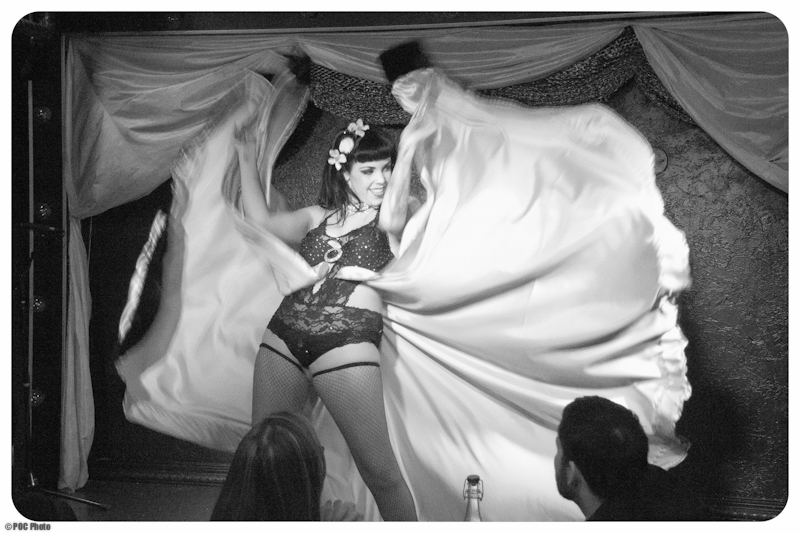 Last week’s Late Night Revue at Can Can (Wednesday, February 6) was a much-talked about event featuring some top-notch talent. The show’s namesake and producer Boom Boom L’Roux has done an exemplary job of creating an exciting new late night variety show and building a reputable name for the series. Each event features a rotating cast of performers, musicians, and surprise guests from all over; last week’s show was no exception. Vancouver’s Lydia DeCarllo (who studied at the Vancouver Circus School) appeared along with belly dancer Bella Jovan, Randi Rascal, musician Gus Clark, MC Miss Adra Boo, and Boom Boom herself.