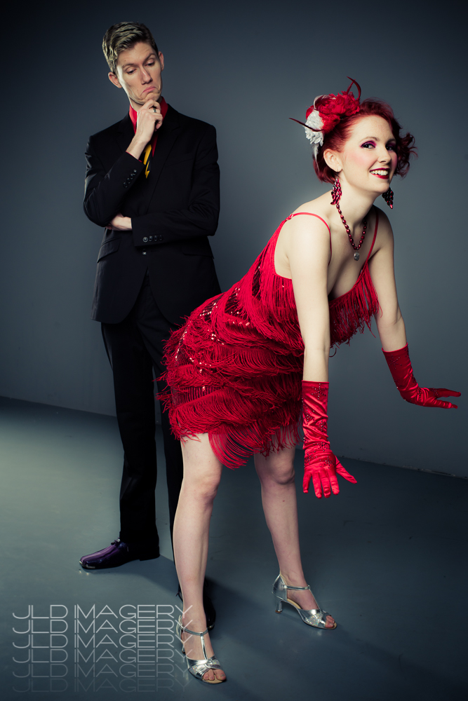 Scarlett: I actually grew up doing community musical theater. My very first play was Showboat and I had the line “Momma, momma, here come the captain.” So I had a lot of theater experience. Also, in early high school I got into going to Anime conventions and cosplaying. So I was sewing a lot of my own costumes and going out in somewhat public venues in crazy outfits and uncomfortable footwear for a couple a weekends a month. I was comfortable onstage and I was comfortable with the idea of wearing weird costumes in front of people. There’s definitely a certain hurdle to get over the idea of actually taking off that weird costume in front of other humans, but I like to joke that I traded my dignity for some magic beans when I was a little kid and that the beans weren’t actually magic. I find life’s a lot more fun if you don’t worry about embarrassing yourself.