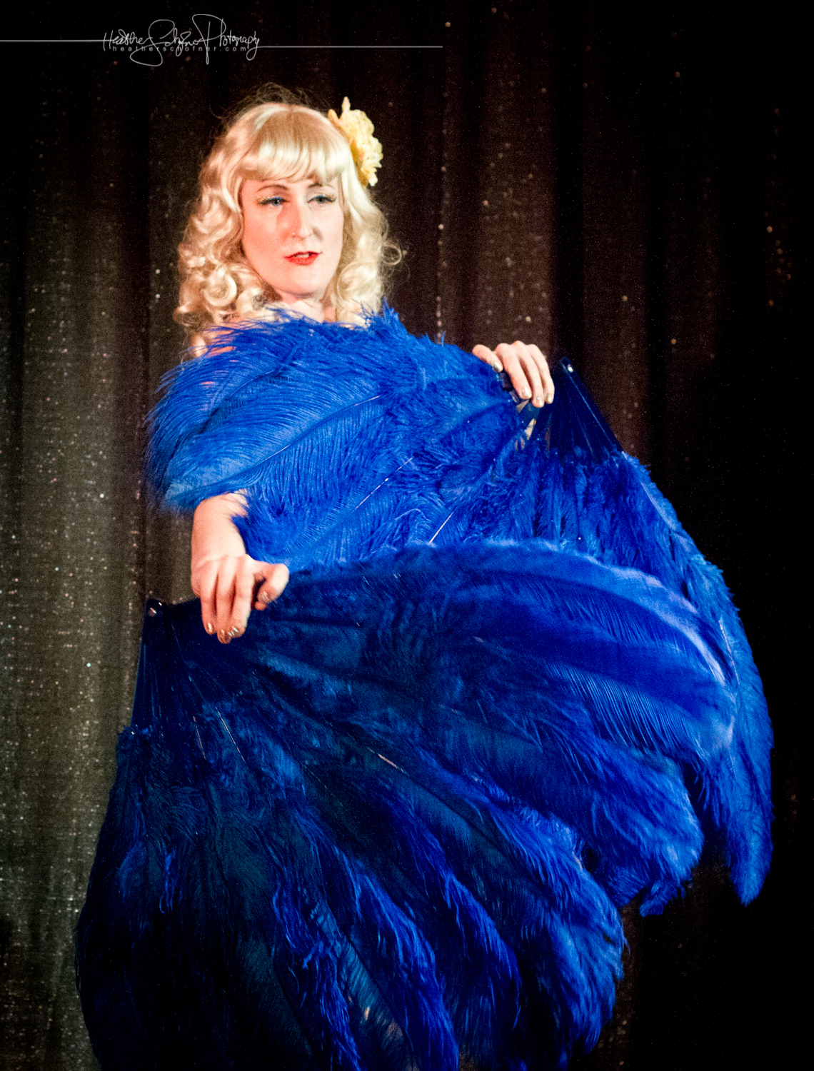 Crystal Tassels, featured guest performer for the 3/29 show only, performs a boozy number to the crowd’s delight (Photo by Heather Schofner)